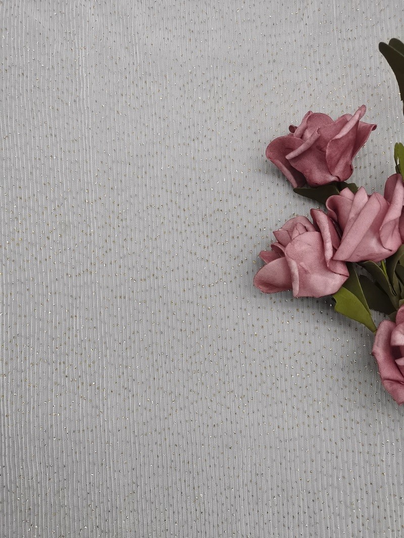 Pleated Tulle Mesh Foil Printed Fabric shimmering Tulle Lace